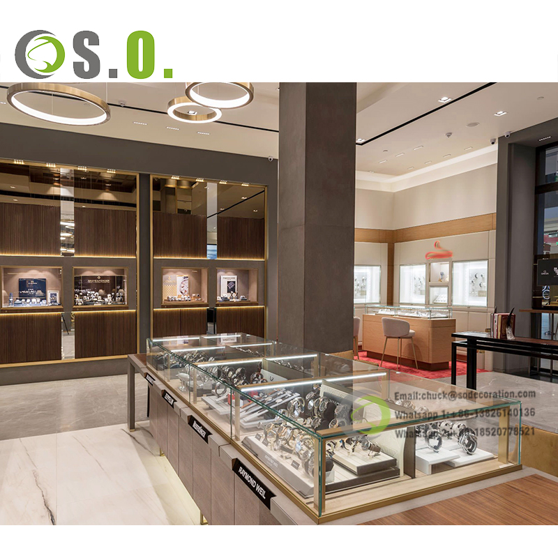 Shero is a leading watch store furniture supplier. We customize design and build watch shops with modern luxury retail fixtures. Golden stainless steel, ultra clear tempered glass&bullet-proof safety glass, Ultra-bright Led Lights, E0 plywood, German famous brand lock&accessories, all those best materials are combined to create a unique charming retail space: A space that integrates both display function and aesthetic beauty. If you want to start a watch shop design and need any watch display cases, Feel Free To Contact Our Team!We will show our sincerity and look forward to working with you!