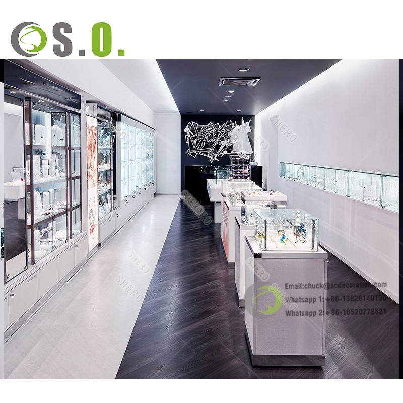 Shero is a leading jewelry store furniture supplier. We customize design and build jewelry shops with modern luxury retail fixtures. Golden stainless steel, ultra clear tempered glass&bullet-proof safety glass, Ultra-bright Led Lights, E0 plywood, German famous brand lock&accessories, all those best materials are combined to create a unique charming retail space: A space that integrates both display function and aesthetic beauty. If you want to start a electronics shop design and need any display cases&packagings, Feel Free To Contact Our Team!Looking forward to working with you!