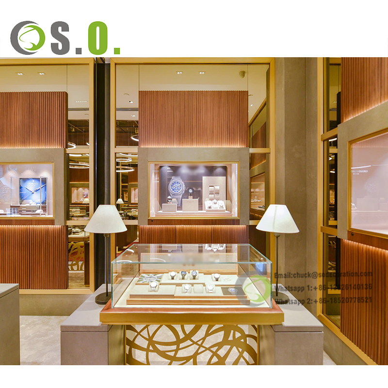 Shero is a leading watch store furniture supplier. We customize design and build watch shops with modern luxury retail fixtures. Golden stainless steel, ultra clear tempered glass&bullet-proof safety glass, Ultra-bright Led Lights, E0 plywood, German famous brand lock&accessories, all those best materials are combined to create a unique charming retail space: A space that integrates both display function and aesthetic beauty. If you want to start a watch shop design and need any watch display cases, Feel Free To Contact Our Team!We will show our sincerity and look forward to working with you!