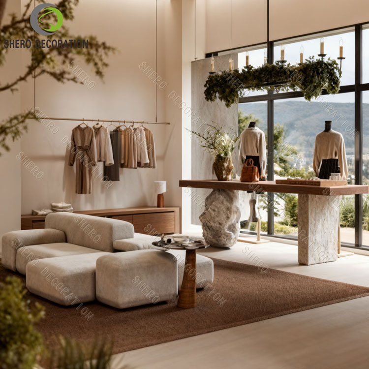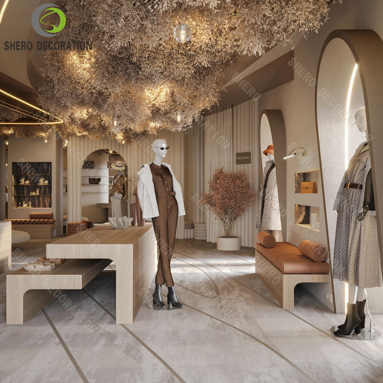 There are different styles can be chosen for shop decoration like modern , classical, simple , luxury etc. As professional manufacturer , we will work step by step to complete the whole progress from 3d design , production, shipping ,installation. So if u have plan to open one clothing shop , please feel free to contact us . We will give u the best solution.