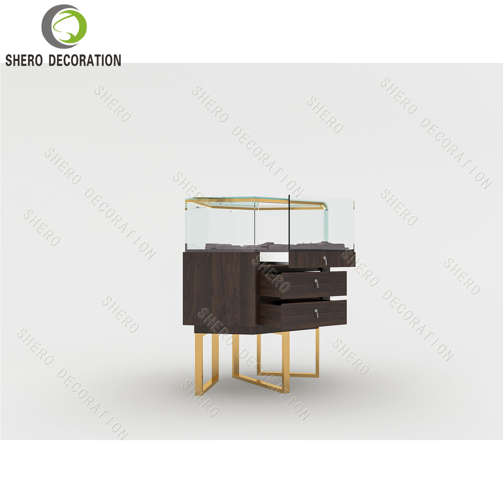 Shero is a leading glass showcases supplier. We customize design manufacturing based on high end quality material guarantee. Golden stainless steel, ultra clear tempered glass&bullet-proof safety glass, Ultra-bright Led Lights, E0 plywood, German famous brand lock&accessories, all those best materials are combined to create a unique charming retail space: A space that integrates both display function and aesthetic beauty. If you wanna customized display showcases or help with your shop 3D interior design, Feel Free To Contact Our Team!