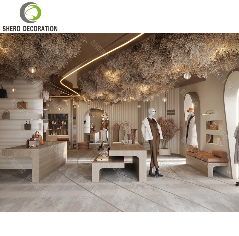 There are different styles can be chosen for shop decoration like modern , classical, simple , luxury etc. As professional manufacturer , we will work step by step to complete the whole progress from 3d design , production, shipping ,installation. So if u have plan to open one clothing shop , please feel free to contact us . We will give u the best solution.