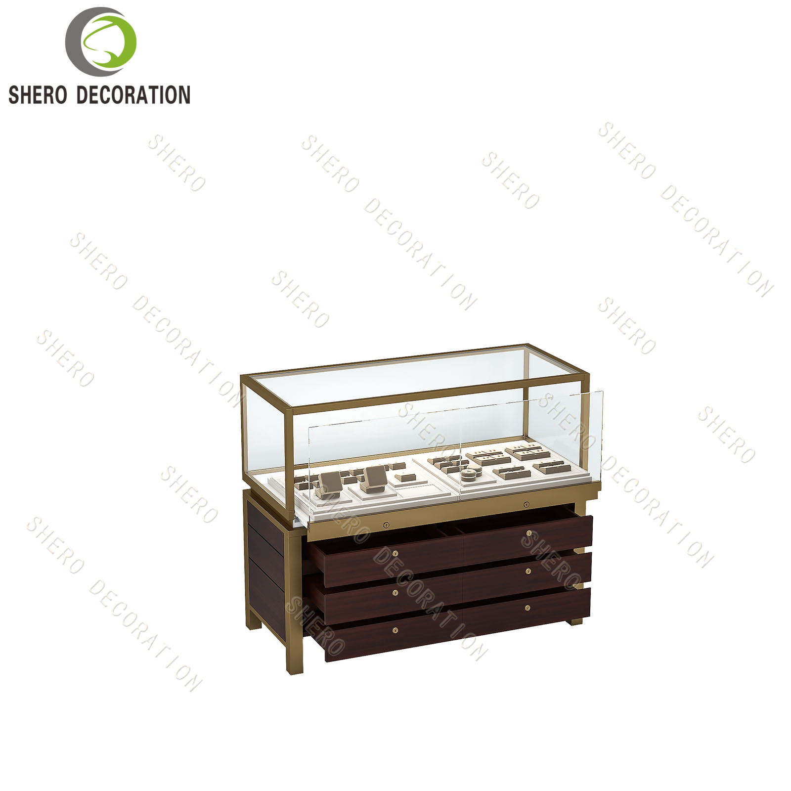 Shero is a leading glass showcases supplier. We customize design manufacturing based on high end quality material guarantee. Golden stainless steel, ultra clear tempered glass&bullet-proof safety glass, Ultra-bright Led Lights, E0 plywood, German famous brand lock&accessories, all those best materials are combined to create a unique charming retail space: A space that integrates both display function and aesthetic beauty. If you wanna customized display showcases or help with your shop 3D interior design, Feel Free To Contact Our Team!
