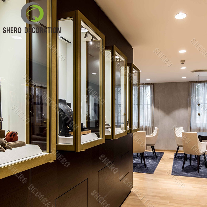 Shero is a leading jewelry store furniture supplier. We customize design and build jewelry shops with modern luxury retail fixtures. Golden stainless steel, ultra clear tempered glass&bullet-proof safety glass, Ultra-bright Led Lights, E0 plywood, German famous brand lock&accessories, all those best materials are combined to create a unique charming retail space: A space that integrates both display function and aesthetic beauty. If you want to start a electronics shop design and need any display cases&packagings, Feel Free To Contact Our Team!Looking forward to working with you!