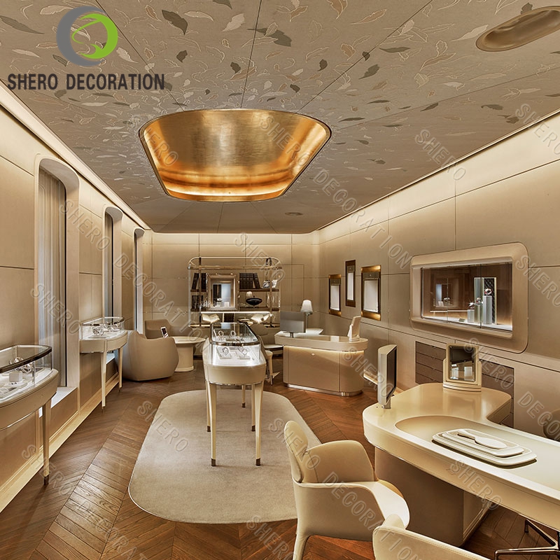 Shero is a leading jewelry store furniture supplier. We customize design and build jewelry shops with modern luxury retail fixtures. Golden stainless steel, ultra clear tempered glass&bullet-proof safety glass, Ultra-bright Led Lights, E0 plywood, German famous brand lock&accessories, all those best materials are combined to create a unique charming retail space: A space that integrates both display function and aesthetic beauty. If you want to start a electronics shop design and need any display cases&packagings, Feel Free To Contact Our Team!Looking forward to working with you!