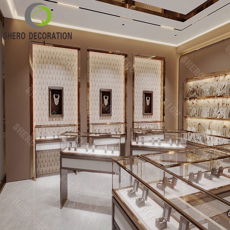 Shero is a leading jewelry store furniture supplier. We customize design and build jewelry shops with modern luxury retail fixtures. Golden stainless steel, ultra clear tempered glass&bullet-proof safety glass, Ultra-bright Led Lights, E0 plywood, German famous brand lock&accessories, all those best materials are combined to create a unique charming retail space: A space that integrates both display function and aesthetic beauty. If you want to start a electronics shop design and need any display cases&packagings, Feel Free To Contact Our Team!Looking forward to working with you!