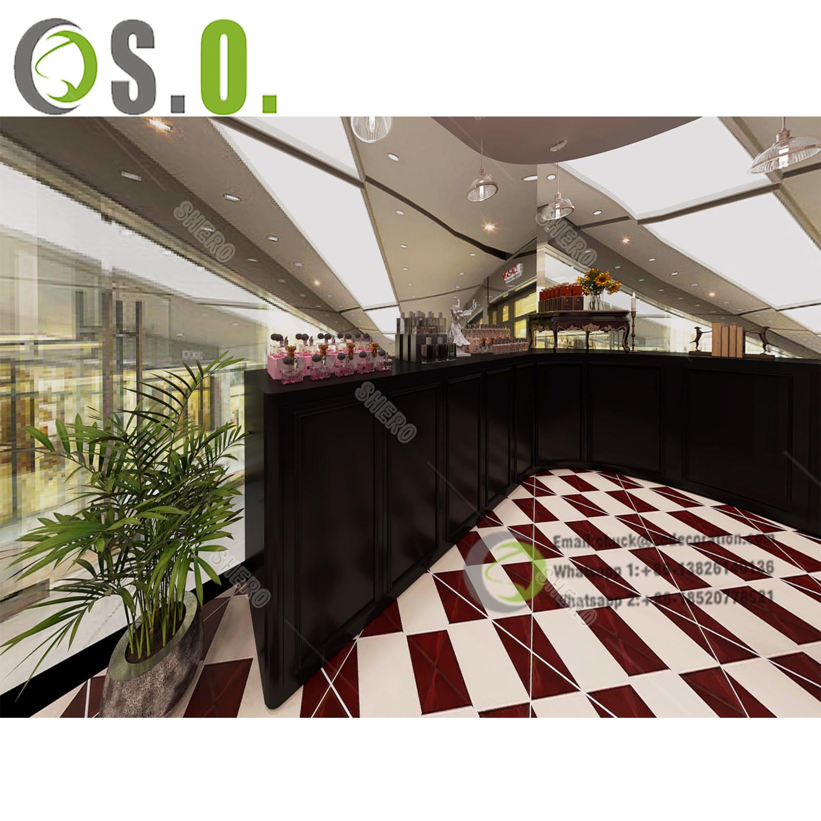 Shero is a leading perfume furniture supplier. We customize design and build perfume shops with modern high-grade retail fixtures. Golden stainless steel, ultra clear tempered glass&bullet-proof safety glass, Ultra-bright Led Lights, E0 plywood, German famous brand lock&accessories, all those best materials are combined to create a unique charming retail space: A space that integrates both display function and aesthetic beauty. If you want to start perfume shop design and and wanna customized display cabinets, Feel Free To Contact Our Team!