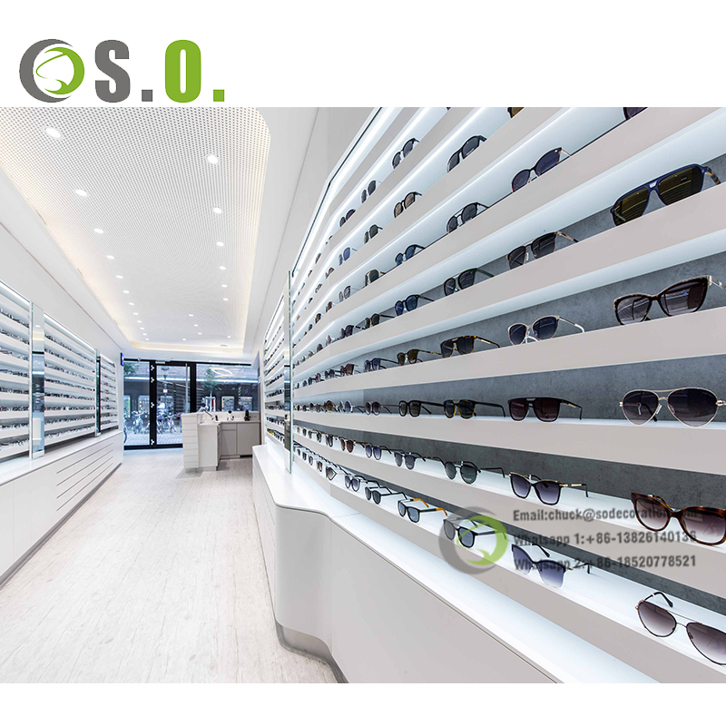 Shero is a leading optical store furniture supplier. We customize design and build optical shops with modern high-grade retail fixtures. Golden stainless steel, ultra clear tempered glass&bullet-proof safety glass, Ultra-bright Led Lights, E0 plywood, German famous brand lock&accessories, all those best materials are combined to create a unique charming retail space: A space that integrates both display function and aesthetic beauty. If you want to start an optical shop design and and wanna customized display cabinets, Feel Free To Contact Our Team!