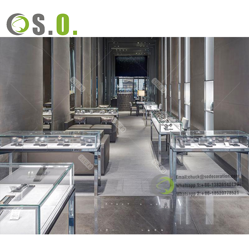 Shero is a leading watch store furniture supplier. We customize design and build watch shops with modern luxury retail fixtures. Golden stainless steel, ultra clear tempered glass&bullet-proof safety glass, Ultra-bright Led Lights, E0 plywood, German famous brand lock&accessories, all those best materials are combined to create a unique charming retail space: A space that integrates both display function and aesthetic beauty. If you want to start a watch shop design and need any watch display cases, Feel Free To Contact Our Team!We will show our sincerity and look forward to working with you!